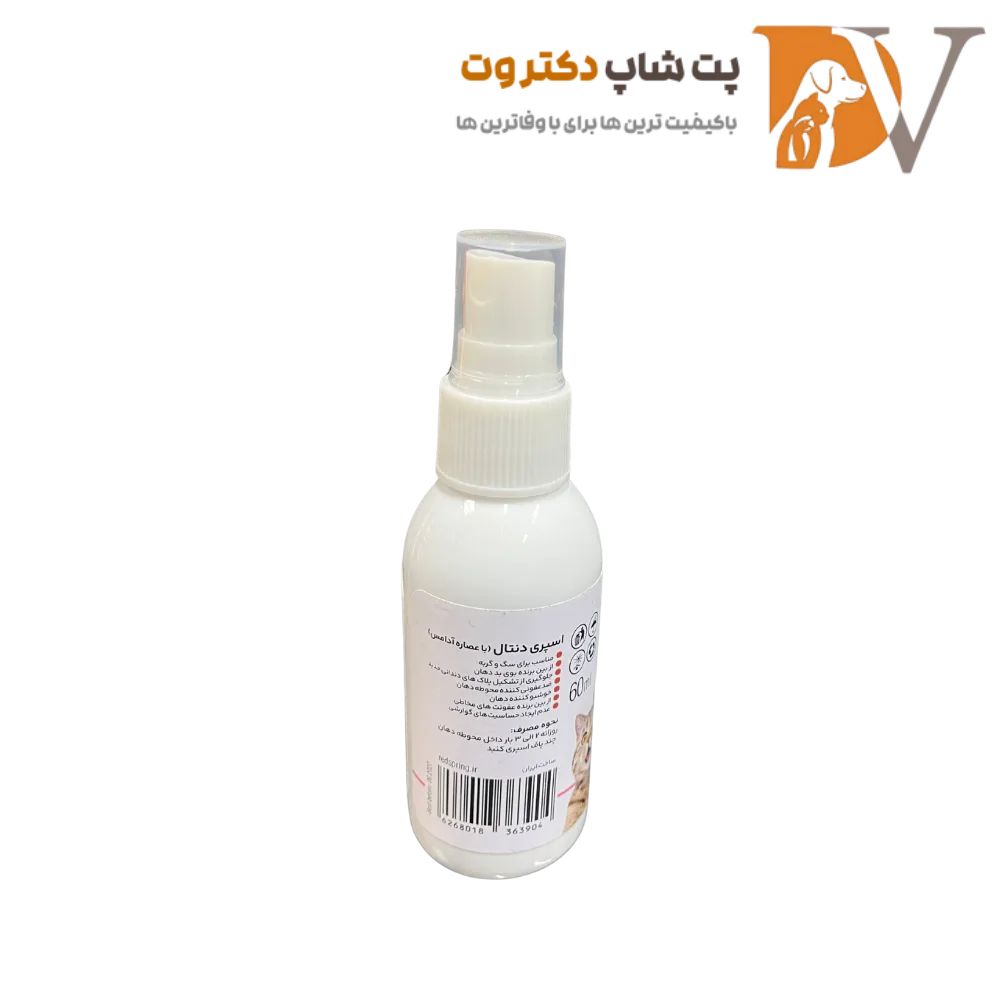 این اسپری ضدعفونیکننده محوطه دهان، از تشکیل پلاک و جرم دندانی جلوگیری کرده و عفونتهای مخاطی را درمان مینماید؛ مناسب همه نژادها و سنین سگ و گربه با pH خنثی و بدون ایجاد حساسیت گوارشی. استفاده آسان آن با ۱-۲ پاف مستقیم داخل دهان، ۲-۳ بار در هفته، جایگزین مناسبی برای مسواکزدن دشوار است.