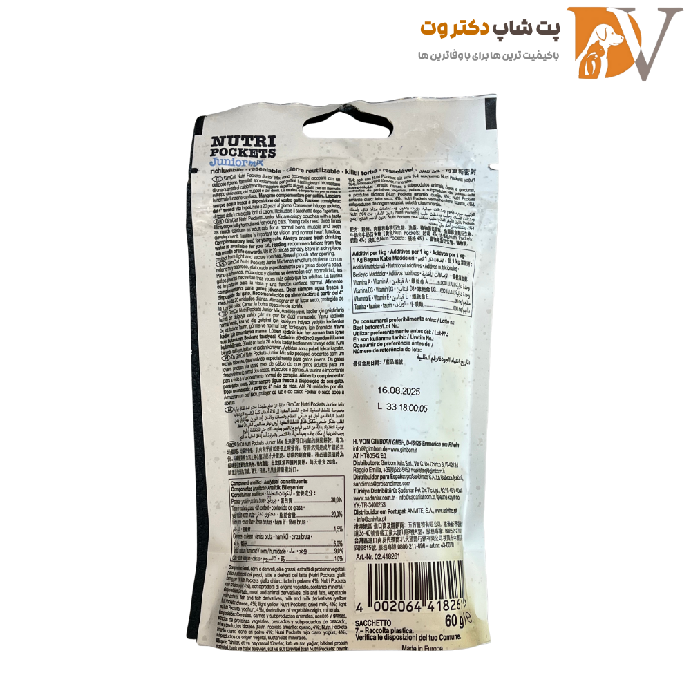 جیم کت (GimCat) برندی آلمانی و معتبر است که به دلیل تولید محصولات باکیفیت برای حیوانات خانگی شهرت جهانی دارد. مدل Nutri Pockets Junior Mix به‌طور اختصاصی برای بچه گربه‌ها طراحی شده تا در دوره حساس رشد، از سلامت استخوان، دندان و اسکلت آن‌ها پشتیبانی کند.