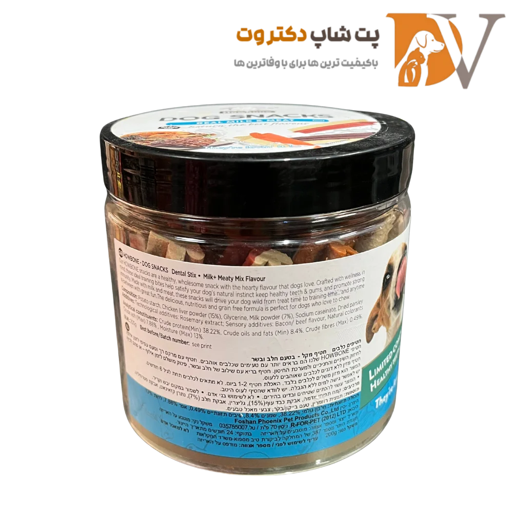 تشویقی سگ هابون طعم شیر و مخلوطی از گوشت ها Howbone milk & meaty mix وزن ۲۲۰ گرم