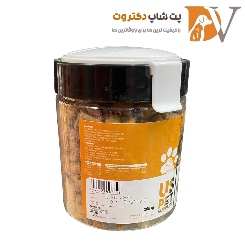 تشویقی گربه هربال مغزدار طعم مرغ و مالت و کدو تنبل یو اس پت ۲۰۰ گرم