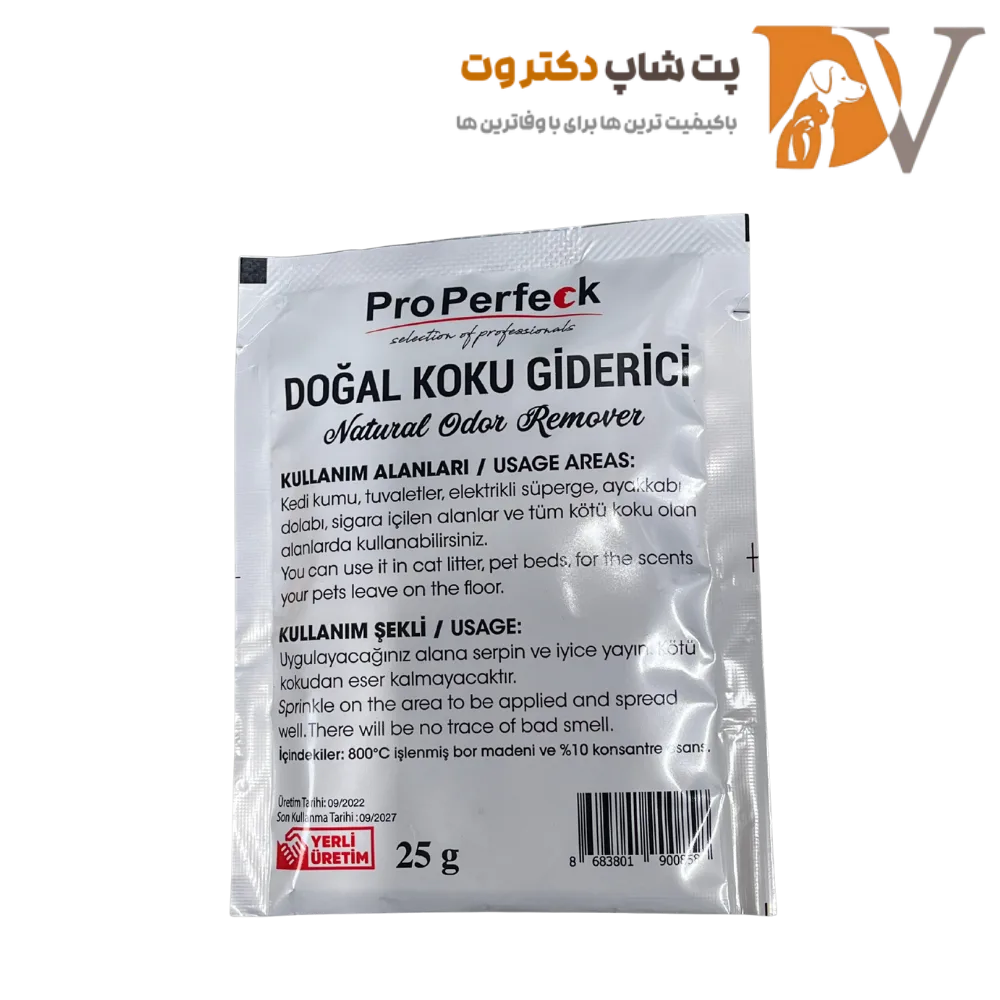 این محصول ساخت کشور ترکیه بوده و به دلیل حجم مناسب ۲۵ گرمی، بستهبندی اقتصادی و مصرف بهینهای را ارائه میدهد. استفاده آسان از آن به این صورت است که مقدار کمی از بوگیر را روی خاک بستر گربه پاشیده و محیط را برای استفاده بهتر آماده میکند. خوشبو کننده و بوگیر خاک پروپرفک گزینهای ایدهآل برای صاحبان گربه است که به دنبال راهکاری موثر و مطمئن برای حفظ بهداشت و بوی خوش محیط نگهداری حیوانشان میباشند.