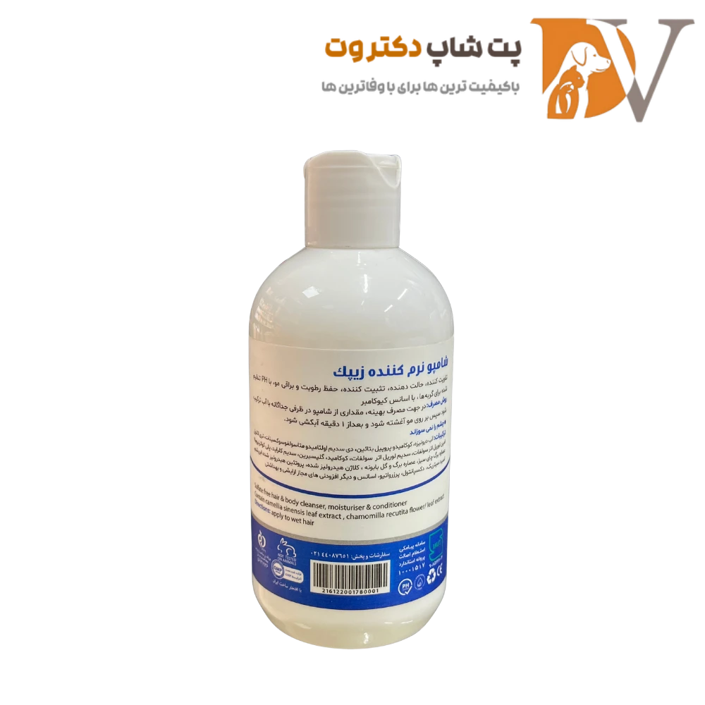 شامپو نرم کننده و ترمیم کننده روزانه گربه زیپاک Zipak Cat Shampoo حجم ۲۵۰ میلی لیتر