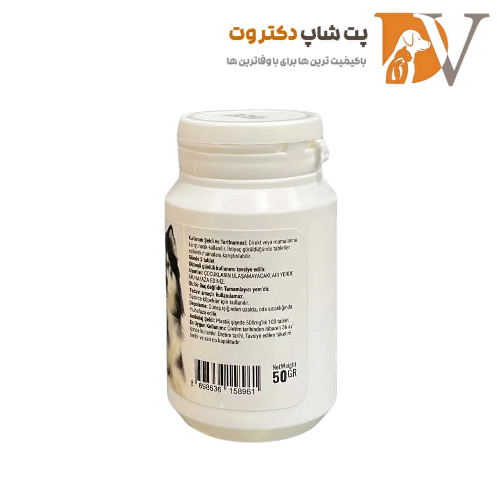 دوز مصرف بر اساس وزن: سگ تا ۳ کیلو (۱ قرص)، ۳-۱۰ کیلو (۲ قرص)، بالای ۱۰ کیلو (۳ قرص) روزانه به صورت مستقیم یا خردشده در غذا؛ مصرف منظم برای بهترین نتیجه توصیه می‌شود، در جای خشک و خنک نگهداری گردد و در صورت بیماری حاد یا بارداری با دامپزشک مشورت شود.