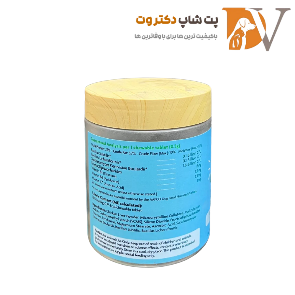 دوز مصرف روزانه: ۱ قرص به ازای هر ۵ کیلوگرم وزن، مستقیم یا مخلوط با غذا؛ مناسب دوره‌های تغییر رژیم، آنتی‌بیوتیک یا استرس، در جای خشک و خنک نگهداری شود و با دامپزشک برای گربه‌های باردار/بیمار مشورت گردد.