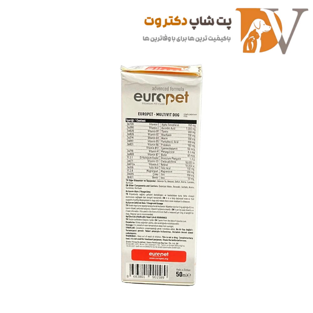 قطره مولتی ویتامین سگ یوروپت 50 میلی