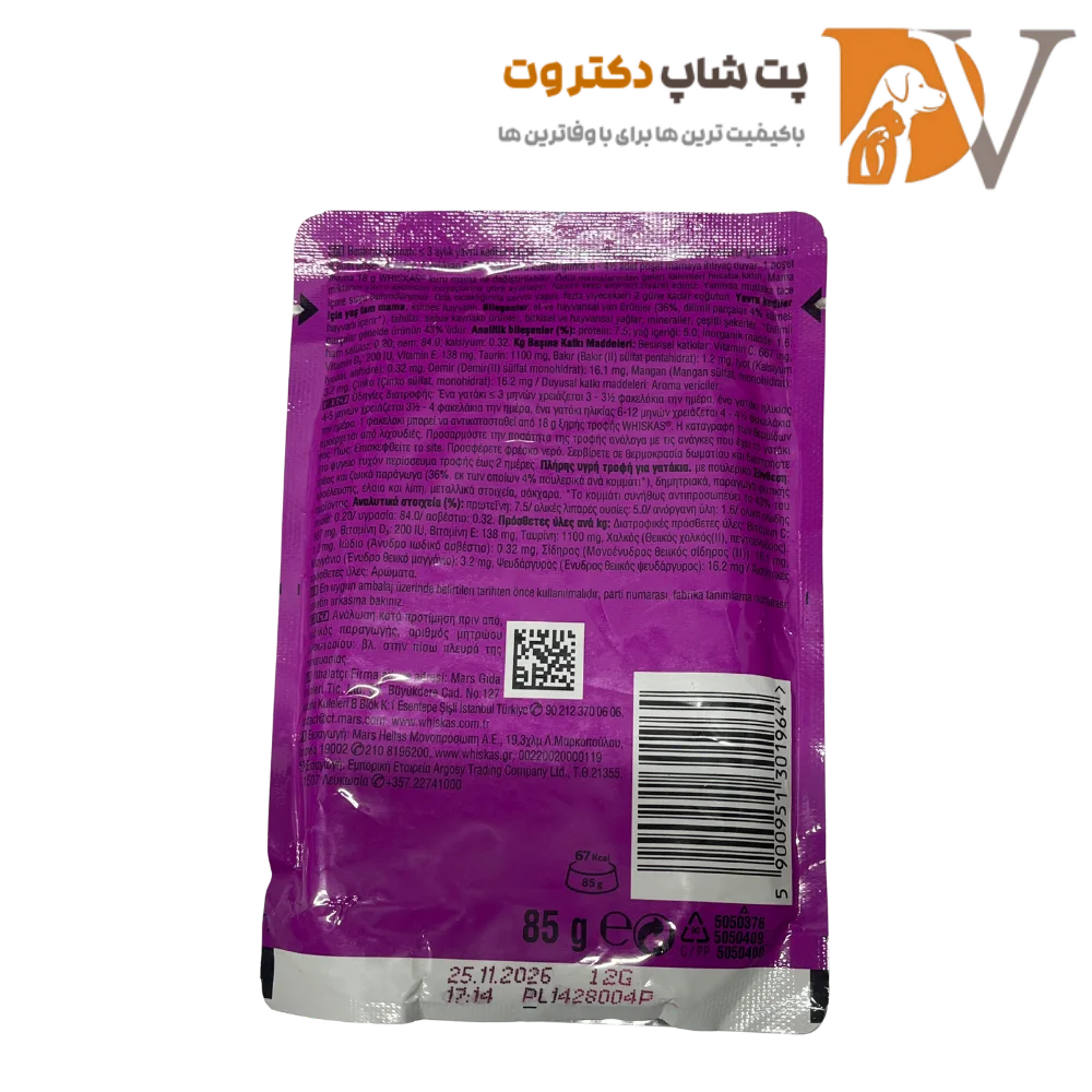 پوچ بچه گربه ویسکاس با طعم مرغ Whiskas Kitten Chicken وزن ۷۵ گرم، یک غذای مرطوب و کامل مخصوص بچه گربههای ۲ تا ۱۲ ماه است. این محصول حاوی تکههای کوچک و نرم مرغ در سس لذیذ است که به راحتی هضم میشود و برای تقویت سیستم ایمنی و سلامت استخوانها و دندانها مناسب است. محتوی ویتامینهای A، D3 و E و مواد معدنی مهم مانند کلسیم و فسفر در آن کمک میکند تا بچه گربهها در سن رشد، ایمن و قوی بمانند. همچنین این پودینگ در طعم و بافتی جذاب و خوشمزه است که توجه بچه گربهها را جلب میکند و مصرف روزانه آن برای رشد سالم پیشنهاد میشود.