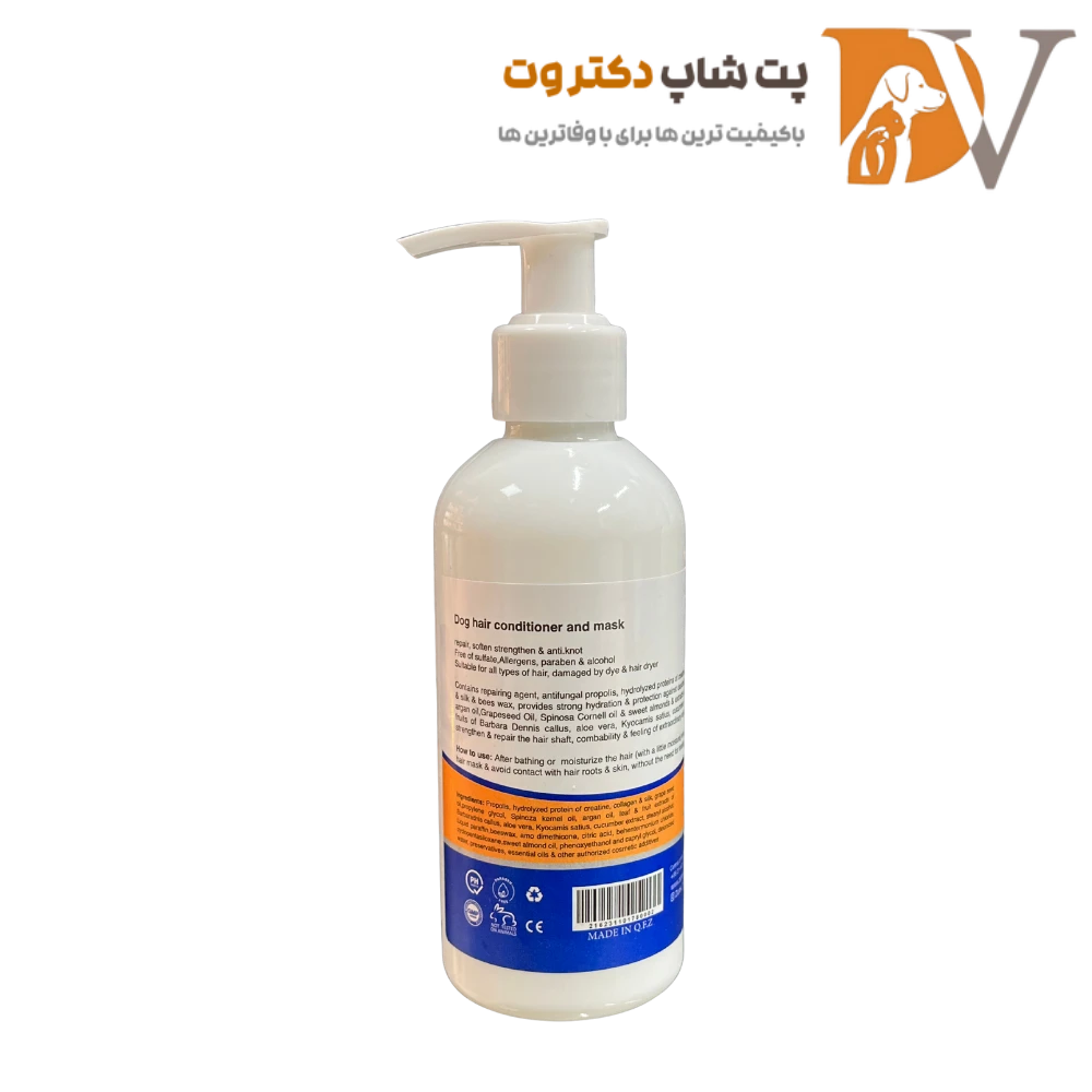 این محصول علاوه بر نرم‌کنندگی، حالت‌دهنده و تثبیت‌کننده مو نیز هست و به سادگی قابل استفاده برای انواع موهای سگ می‌باشد. این ماسک با pH تنظیم شده و فاقد مواد حساسیت‌زا طراحی شده تا آسیبی به پوست حیوان وارد نکند و استفاده منظم آن موجب جلوگیری از وز شدن موها و افزایش لطافت طبیعی می‌شود.