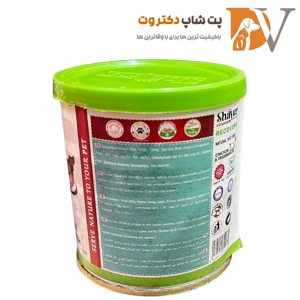 کنسرو ریکاوری سگ طعم مرغ و سبزیجات برند شایر Shayer recovery with chicken & vegetables وزن ۳۰۰ گرم