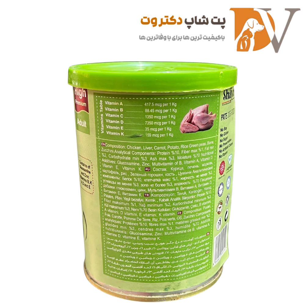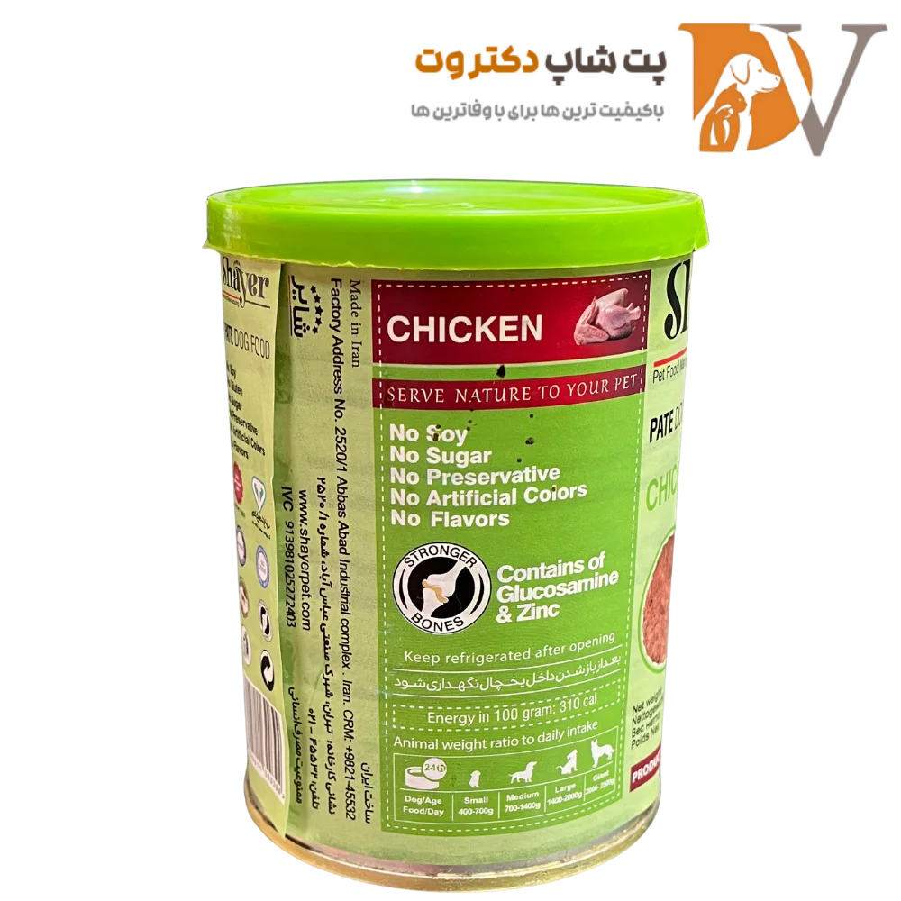 کنسرو پته سگ با طعم مرغ برند شایر Shayer Pate With Chicken وزن ۴۰۰ گرم