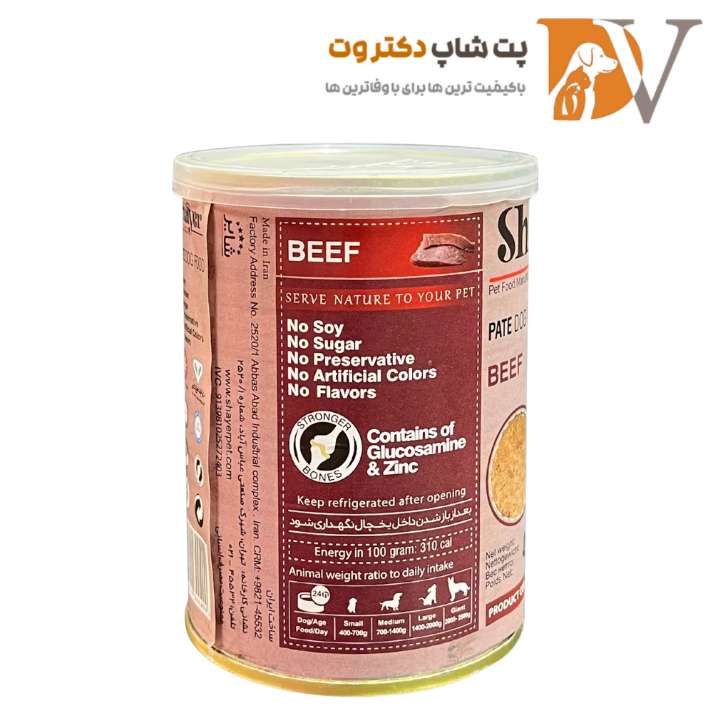 کنسرو پته سگ با طعم گوشت برند شایر Shayer Pate With Beef وزن ۴۰۰ گرم