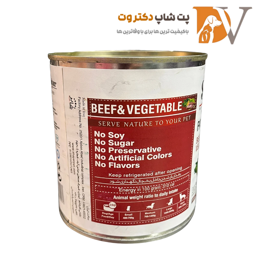 کنسرو پته سگ با طعم گوشت و سبزیجات برند شایر Shayer Pate With Beef & Vegetable وزن ۸۰۰ گرم