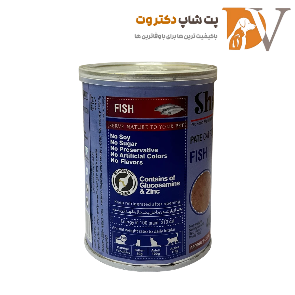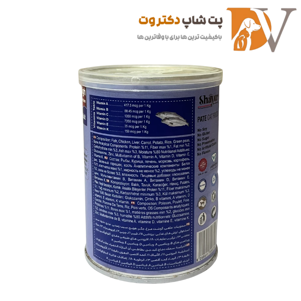 کنسرو پته گربه با طعم ماهی برند شایر Shayer Pate With Fish وزن ۴۰۰ گرم