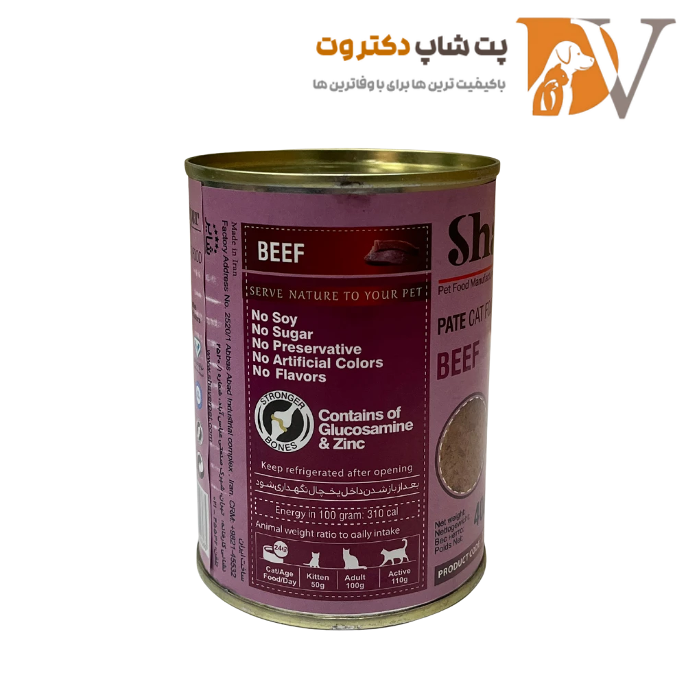 کنسرو پته گربه با طعم گوشت برند شایر Shayer Pate With Beef وزن 400 گرم